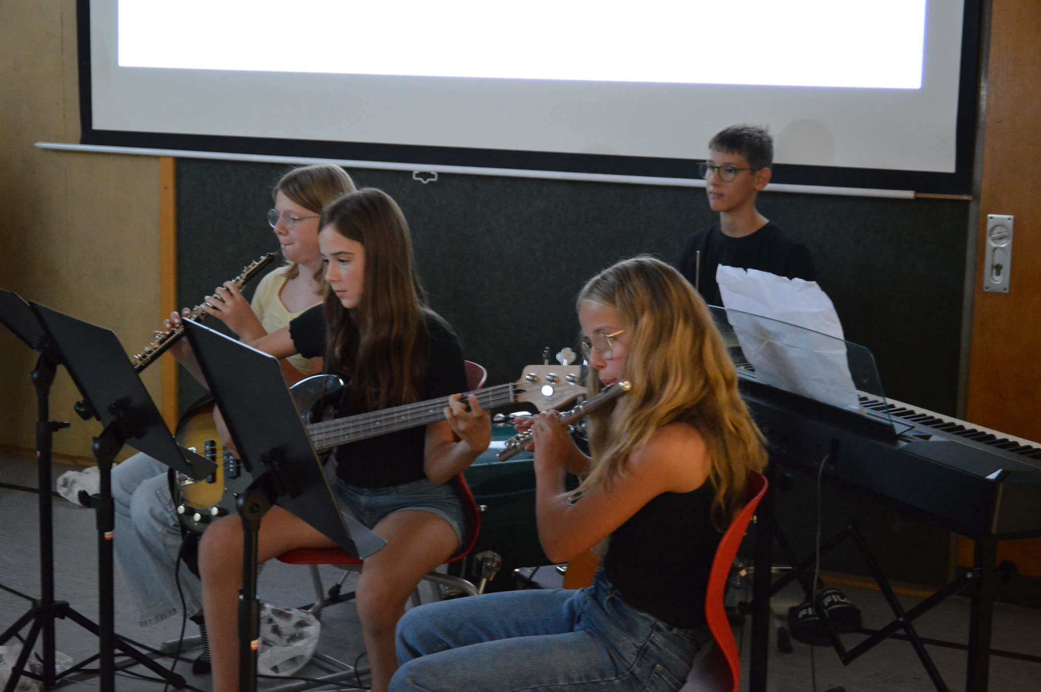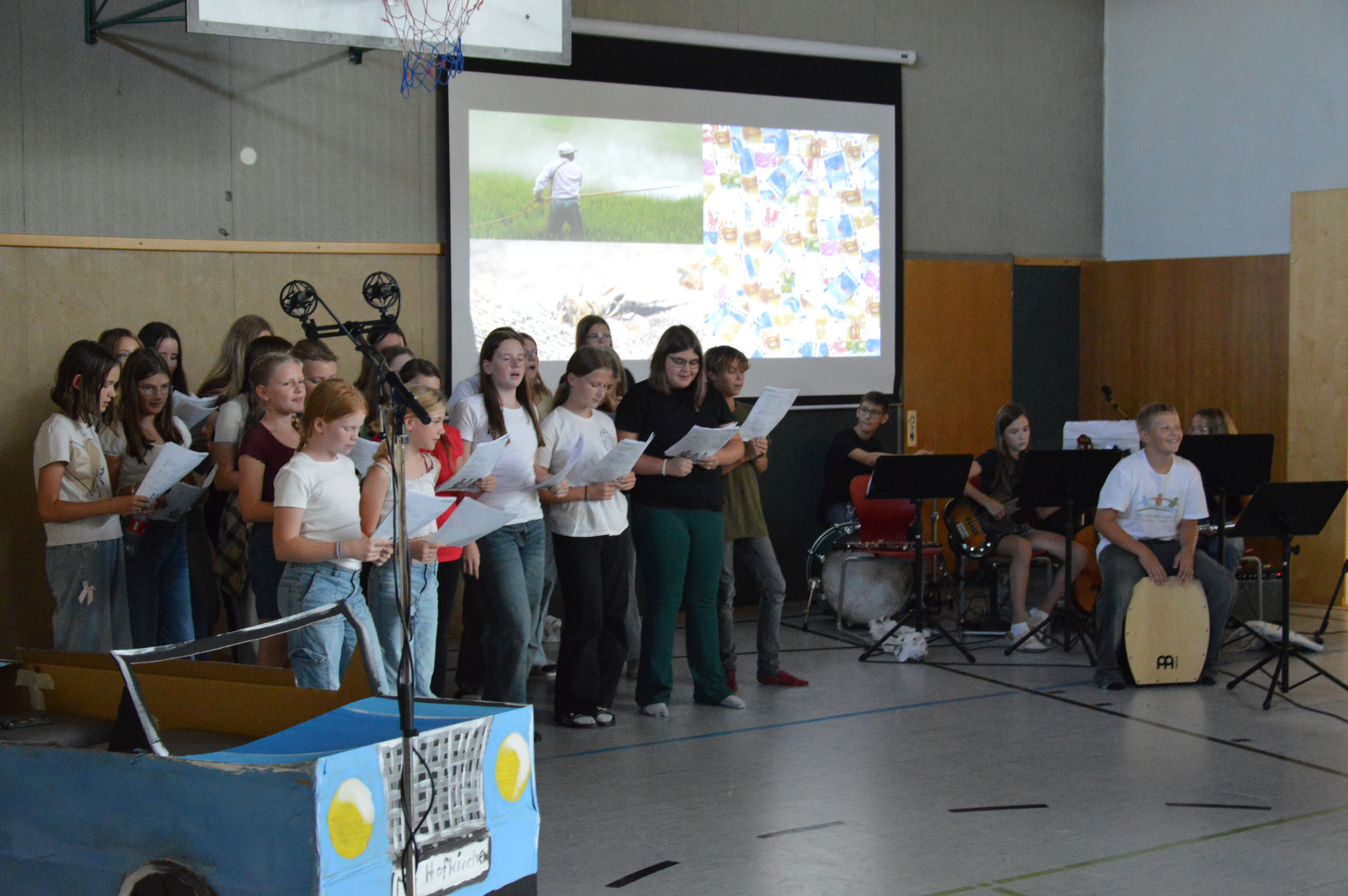 Viele SchülerInnen von der 1. bis zur 3. Klasse leisteten einen Beitrag als SchauspielerInnen, SängerInnen, MusikerInnen, BühnenbildnerInnen, TechnikerInnen, …